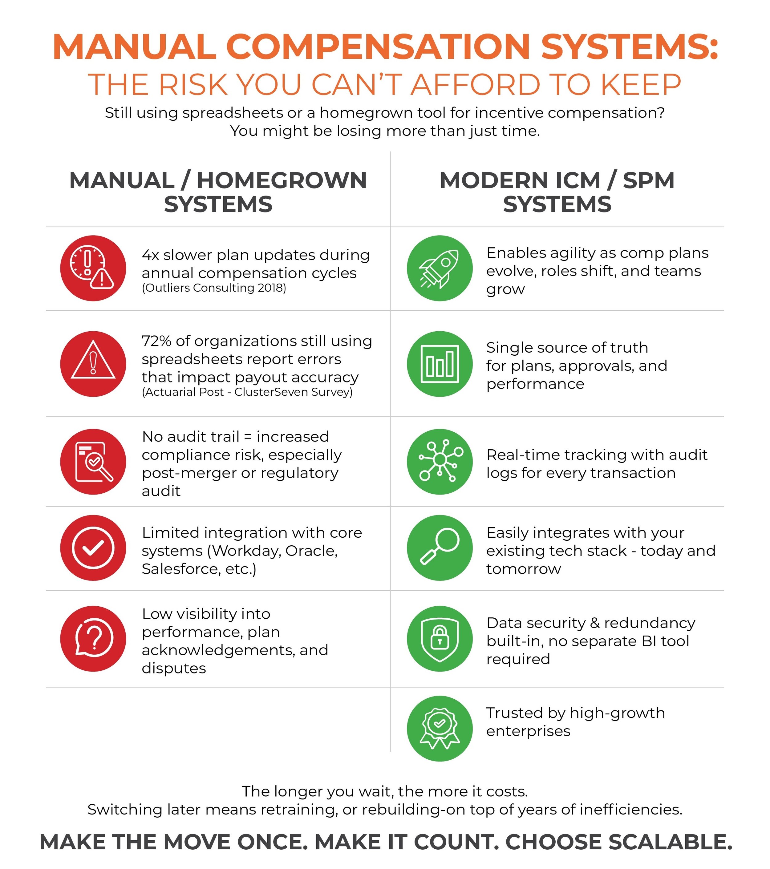 From compliance concerns to limited visibility and costly inefficiencies, legacy compensation tools often fall short just when you need them to scale. And while it might feel safe to stick with the tools you know, doing so can quietly cost your business more than you realize.